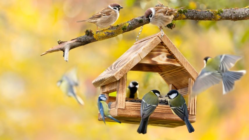 Please ensure bird feeders are at least 1 1/2 feet from windows so that hungry birds don't collide with the glass. |