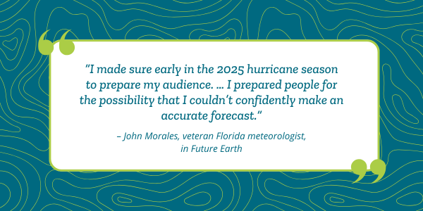 Some forecasters respond by βover-warning,β Morales explains. However, as noted in his quote above, he tried to explain to his audience that he couldnβt confidently make predictions, because about 20% of formerly available data isnβt available any longer, due to the cuts.